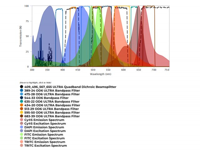 1,2-Diphenylacetylene, 5-FAM, 5-TAMRA (pH7), 7-Hydroxy-4-methylcoumarin, Acridine Yellow, Alexa Fluor® 405, Alexa Fluor® 546, Alexa Fluor® 647, Alexa Fluor® 680 APC, Alexa Fluor® 680 R-PE, AMCA (pH 9), AmCyan1, Amplex UltraRed, APC, ATTO 465, ATTO 550, ATTO 565, ATTO 635, ATTO 647, ATTO OXA12, ATTO RHO11, ATTO RHO3B, Azami Green, Azami Green (monomeric), BCECF@pH5.2, BCECF@pH5.5, BO-PRO-3, BOBO-3, BODIPY® 650/665-X, BODIPY® TMR-X, BODIPY® TMR-X (IgG), C3-Oxacyanine, C3-Thiacyanine (PrOH), C5-Indocyanine, C5-Thiacyanine, Calcein, Calcium Orange, Calcofluor White 2MR, Carboxy SNARF®-1 (pH 6), Cascade Blue®, CellMask Deep Red, CellMask Orange, CellTrace Calcein Violet, CF405M, CF405S, CF488A, CF568, CF570, CF640R, CF647, Coumarin 1, Coumarin 6, Cy®2, CypHer5 (pH 4.67), Dapoxyl(2-aminoethyl)sulfonamide, DDAO, DiA, DiD, DiO, DRAQ5, DsRed, DsRed Dimer2, DsRed Express T1, DsRed Tandem Dimer2, dTomato, DY-547, DY-630, DY-631, DY-633, DY-635, DY-636, DY-647, DY-650, DY-651, DY-656, EBFP, EGFP, Emerald, EVOblue-30, FlAsH, Fluo-3, Fluorescein (0.1M NaOH), Fluorescein (IgG), Fluoro-Emerald, FluoSpheres® Blue, FluoSpheres® Dark Red, FluoSpheres® Red, FM 1-43, HCS CellMask Deep Red, HCS CellMask Green, HCS NuclearMask Deep Red, HiLyte Fluor 647, HiLyte Plus 647, Hoechst® 33258, Hoechst® 33342, LDS 751, LIVE/DEAD® Fixable Aqua Dead Cell Stain, LIVE/DEAD® Fixable Far Red Dead Cell Stain, LysoSensor Blue, Magnesium Orange, mApple, Marina Blue®, Me-Coumarin, Merocyanine 540, Methylene Blue, MitoTracker® Deep Red, MitoTracker® Green, MitoTracker® Green FM, MitoTracker® Orange, mTangerine, mWasabi, NBD, NBD-X, NeuroTrace® 500/525 Green Fluorescent Nissl Stain (RNA), Nile Blue (EtOH), Nile Blue (MeOH), Oxazine 1, PA-TagRFP, Pacific Blue, PerCP-Cy5.5®, pHrodo® succinimidyl ester, PO-PRO-3, Pontamine Fast Scarlet 4B, POPO-3, Porphin, Pro-Q® Diamond, PromoFluor-380LSS, PromoFluor-395LSS, PromoFluor-405, PromoFluor-488, PromoFluor-488 Premium, PromoFluor-546, PromoFluor-647, PS-CFP2, Quasar® 670, R-phycoerythrin, Resorufin, Rhod-2, Rhodamine (phalloidin), Sapphire, sgBFP, sgGFP, Spectrum Blue, Spectrum Far Red, Spectrum Orange, SYTO® 13, SYTO® 16, SYTO® 60, SYTO® 62, SYTO® 9, SYTOX® Red, T-Sapphire, TagBFP, TagGFP, TagGFP2, TagRFP, tdTomato, ThiolTracker Violet (GSH), TO-PRO®-3, TOTO®-3, TurboGFP, TurboRFP, Vybrant® DyeCycle Ruby, Vybrant® DyeCycle Violet, WEGFP (post-activation), wtGFP, YO-PRO®-1, YOYO®-1 |