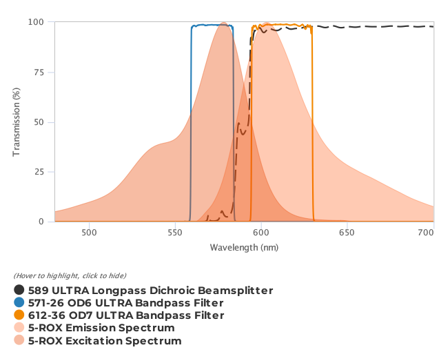 Alexa Fluor® 568, Alexa Fluor® 594, AsRed2, ATTO 590, ATTO RHO101, ATTO RHO11, ATTO RHO12, ATTO RHO3B, ATTO Thio12, BO-PRO-3, BOBO-3, BODIPY® TR-X, BODIPY® TR-X (Phallacidin), C5-Oxacyanine, Calcein Red-Orange, Calcium Crimson, CellTrace BODIPY® TR, CellTrace Calcein Red-Orange, CellTracker Red CMTPX, CF570, CF583, CF594, CF594ST, Cresyl Violet perchlorate, Crystal Violet (glycerol), Cy®3.5, DHPE Texas Red®, DY-590, FluoSpheres® Red, FusionRed, HCS LipidTOX Red Neutral Lipid Stain, HCS LipidTOX Red Phospholipidosis Detection Reagent, Katushka2S, KFP-Red, Lissamine Rhodamine, mApple, mCherry, MitoTracker® Red, mKate2, mRFP1, mStrawberry, PA-TagRFP, PromoFluor-568, PromoFluor-590, PromoFluor-594, Rhodamine Red-X, Sulforhodamine 101, Texas Red® R-PE, X-rhod-1 |